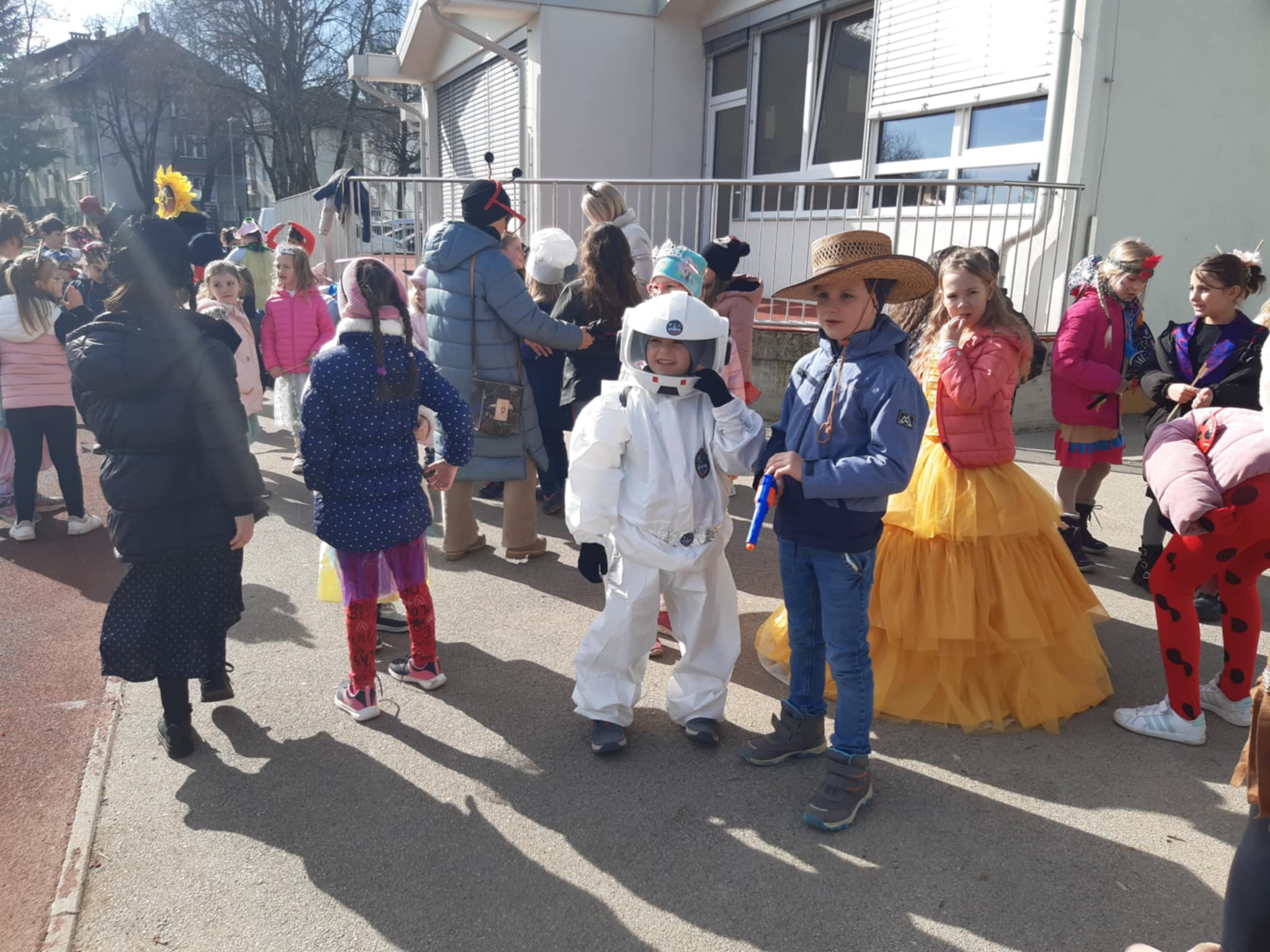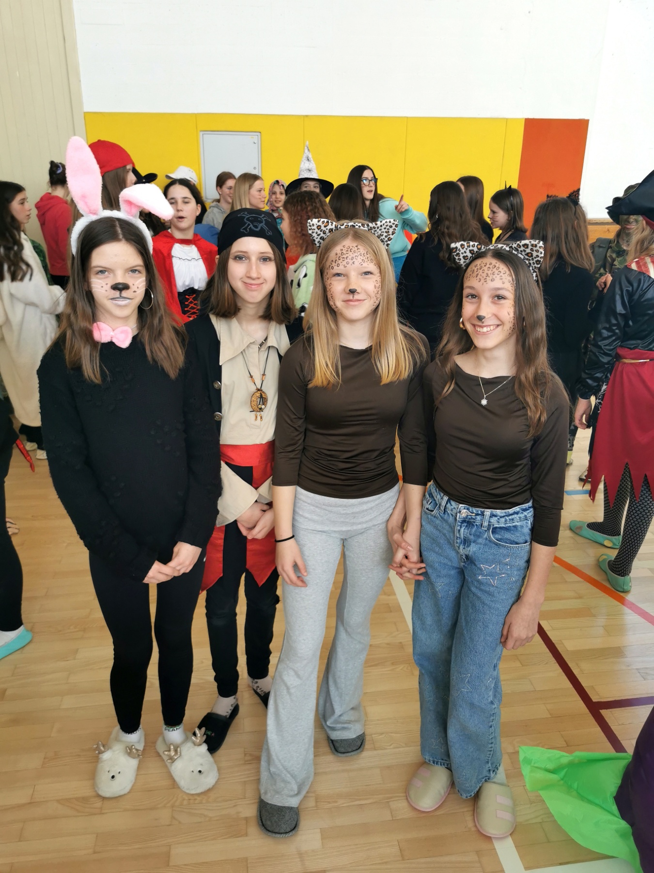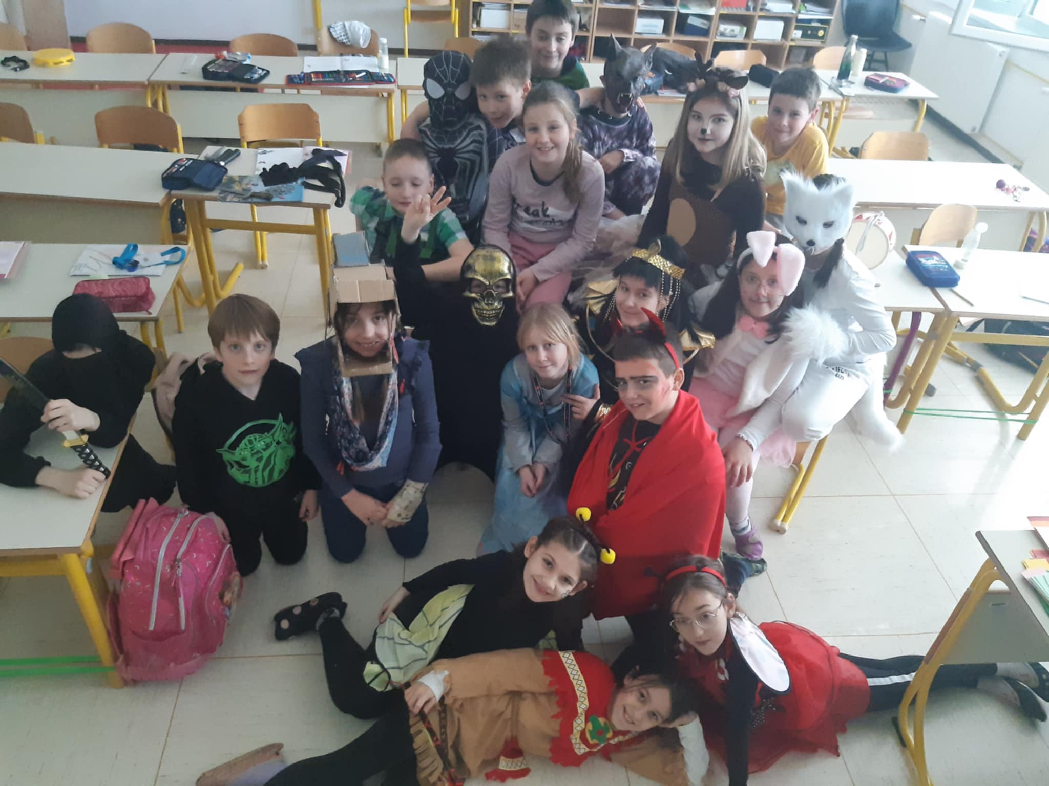 Na šoli smo danes videli veliko novih obrazov. Poleg učencev so se nam pridružili risani junaki, kokoši, mucke, veveričke, klovni, čarovnice, gusarji, banane, vile, vitezi, princeske in mnoge druge izvirne maske.