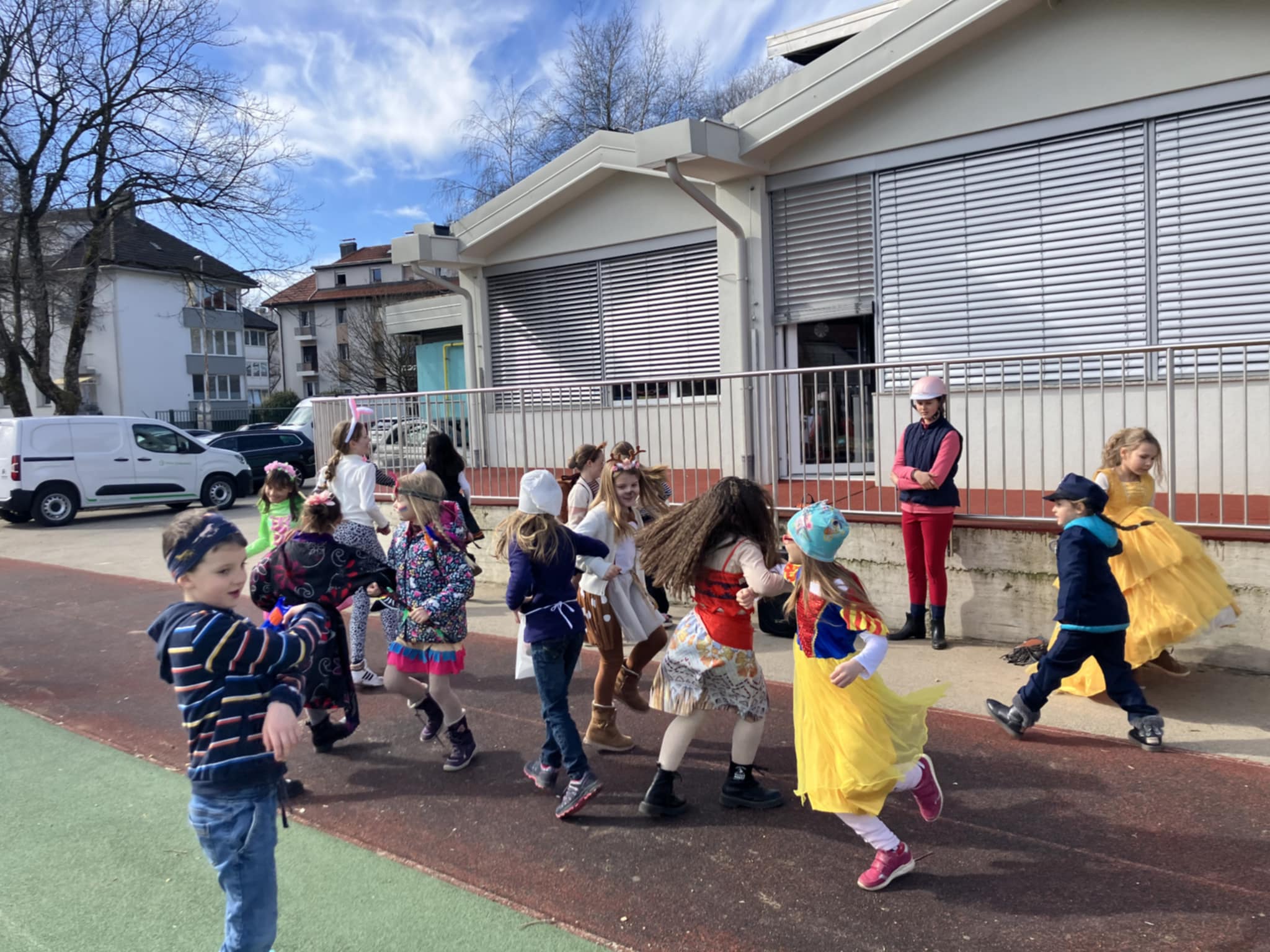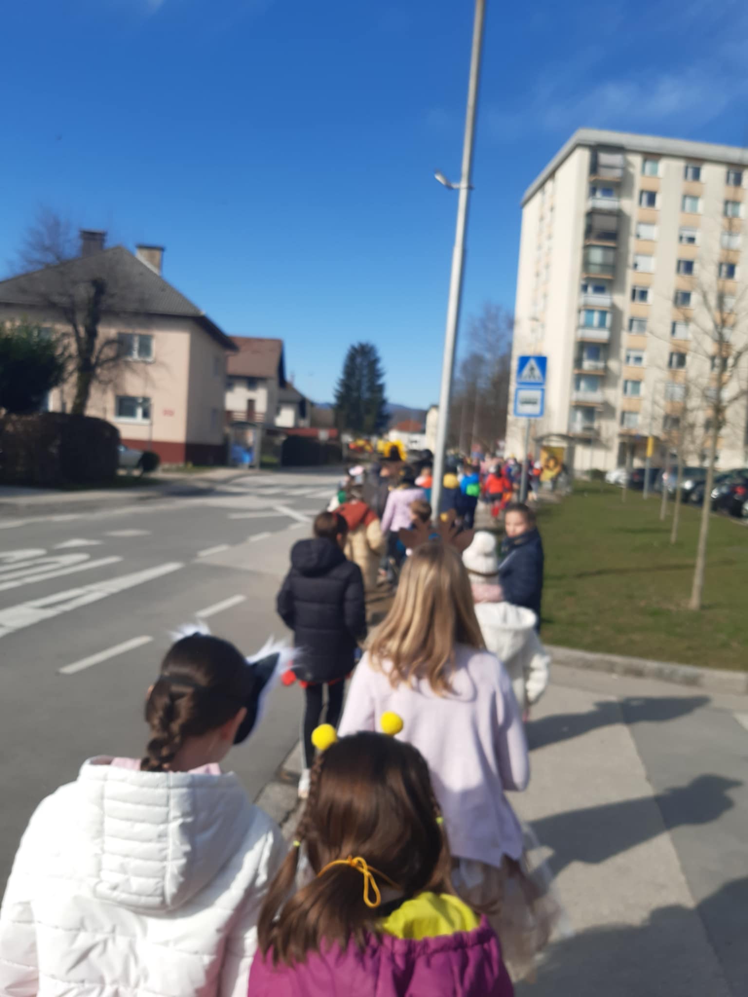 V telovadnici, na šolskem igrišču in po naselju okoli šole so pustne šeme preganjale zimo in priklicale pravi pomladanski dan. Posladkale so se s slastnimi krofi.