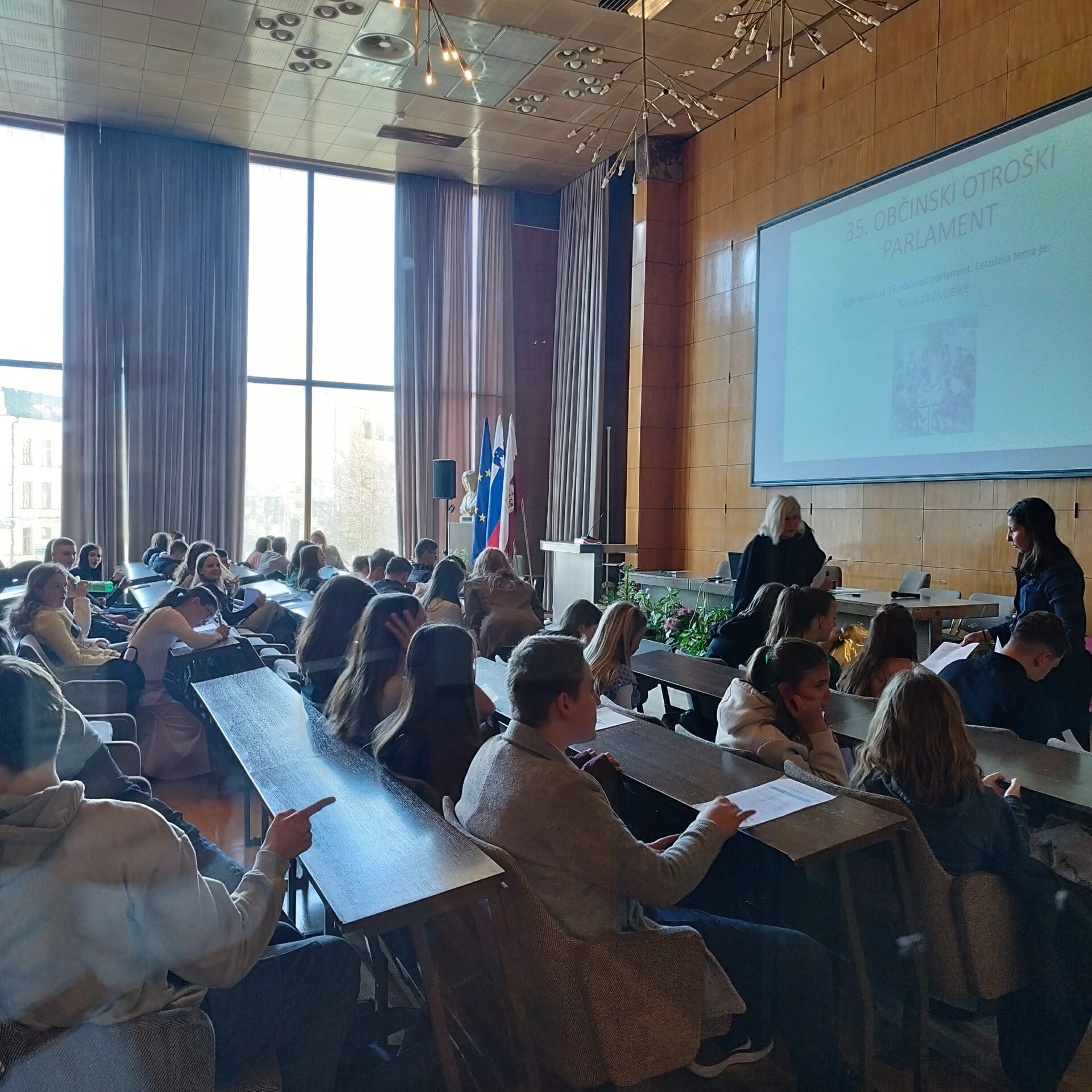 Osrednja tema letošnjega parlamenta je bila “Šolski sistem”, razpravo pa so vodili mladi parlamentarci treh šol. Med njimi sta bila tudi Martin Verčič (9. a) in Anamarija Praljak (8. b), ki sta odlično moderirala delavnico na temo Metode in načini učenja/poučevanja. Izsledke delavnice je predstavila Nina Keršič (8. b).