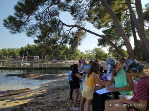 Četrti razredi smo šolsko leto pričeli na Hrvaškem. V Savudriji smo se učili plavati. Imeli pa smo tudi pouk. Najbolje je bilo plavati v bazenu, v morju seveda tudi. Najbolje je bilo, ko smo lahko skakali s pomola. Tretji dan smo se peljali z vlakcem v Umag. Ko smo izvedeli, da v Umagu živi Baby Lasagna, smo od veselja začeli vpiti. Sobe so bile lepe, postelje zelo udobne. Kosila so bila zelo okusna.