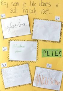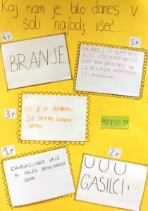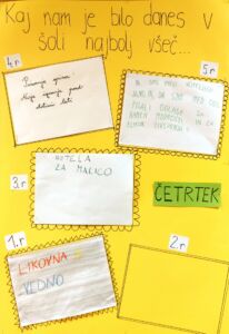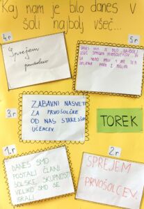 Predstavniki razredov so dobili nalogo, da v sodelovanju s sošolci vsak dan napišejo, kaj jim je bilo v tistem dnevu najbolj všeč. Te misli so zapisali na liste in jih nalepili na plakat na šolskem hodniku. Nekateri so zapisali, da jim je bila najbolj všeč športna ura, drugi so uživali v ustvarjalnih nalogah, spet tretji so izpostavili malico.