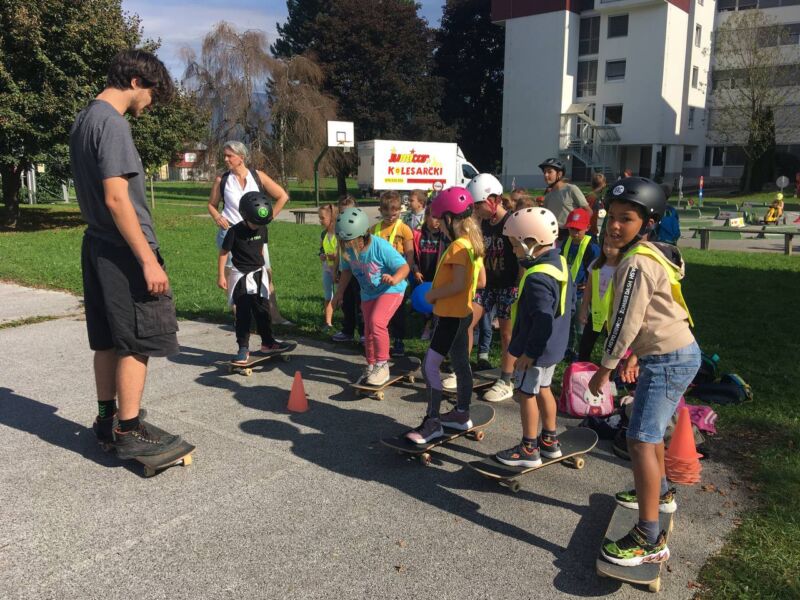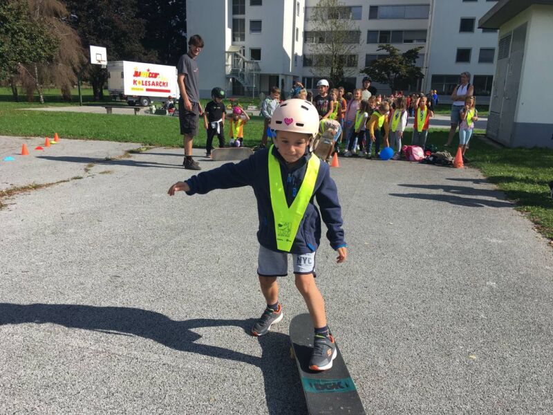 V ponedeljek, 22. 9. 2025, je v Kranju potekal varnostno-prometni dan. Namenjen je bil promociji varnosti v prometu in ozaveščanju učencev. Dogodka smo se udeležili tudi učenci prve triade naše šole. Na voljo so bile različne delavnice. Spoznali smo lahko delo gasilcev in policistov, osnove prve pomoči, odgovarjali smo na vprašanja o ločevanju odpadkov, se preizkusili v hoji s hoduljami, rolkali in se vozili na prometnem poligunu. Med dejavnostmi nas je večkrat obiskal škrat Kranjček in nas spodbujal pri reševanju izzivov. Ni kaj, bilo je prav zabavno.
