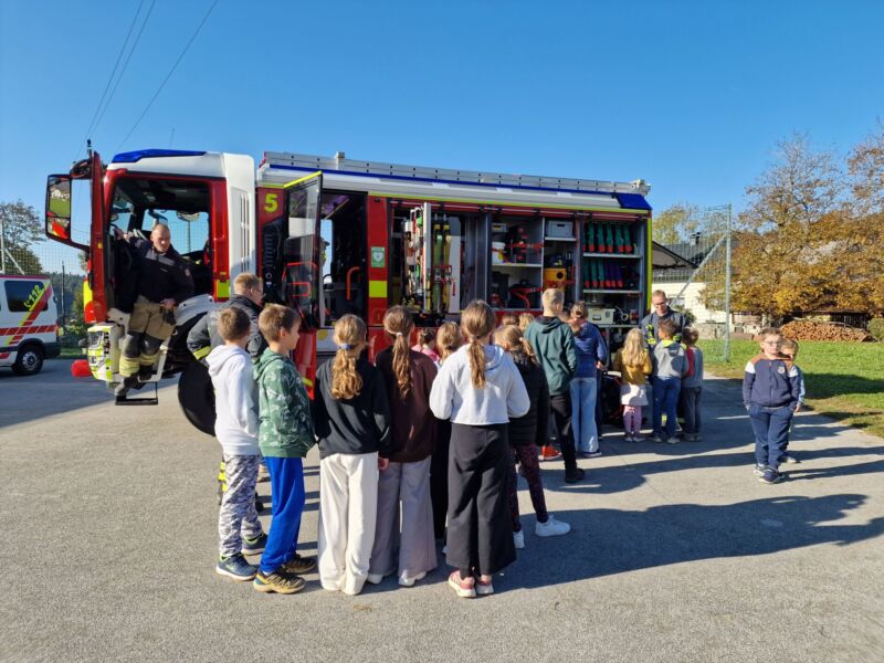 V petek, 17. 10. 2025, so nas obiskali gasilci. Najprej smo se naučili, kako ravnati v primeru požara in kako se rešiti iz goreče šole. Opravili smo tudi evakuacijsko vajo. Potem so nam pokazali gasilski avto in opremo, ki jo uporabljajo pri svojem delu.